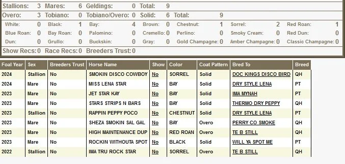 Sire: Tres Ringo Dam: Poco Rey Sis